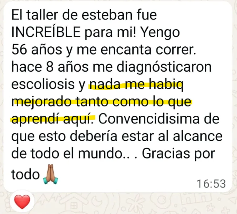 No importa tu edad ni cuántos años lleves con dolor. Este taller funciona porque corrige la mecánica básica del cuerpo humano, que es igual para todos.