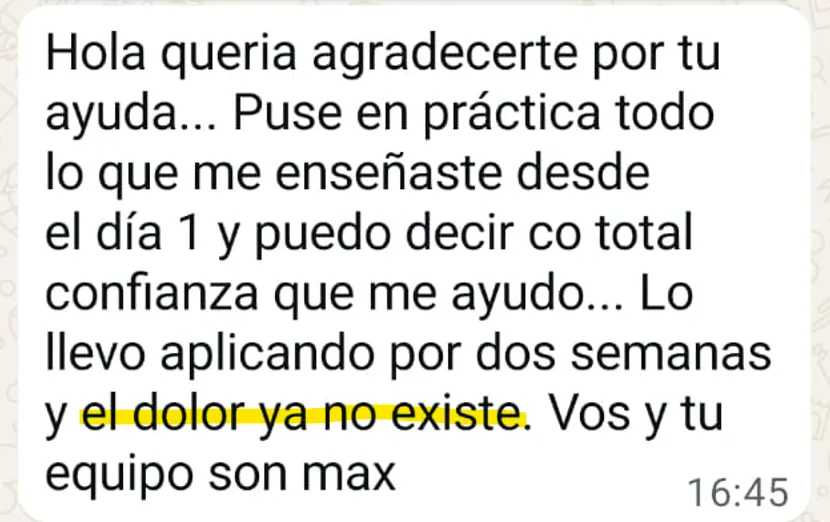La mayoría de personas sienten alivio inmediato al corregir su alineación corporal durante el taller. En los primeros 7 días notarás mejoras significativas en tu dolor y movilidad. Los resultados completos y duraderos se consolidan en las primeras 2-4 semanas.